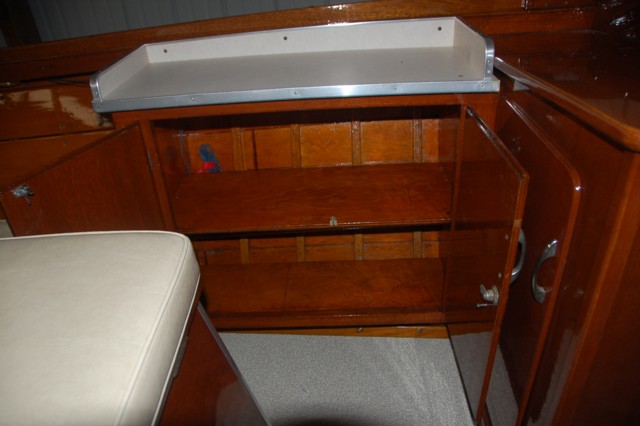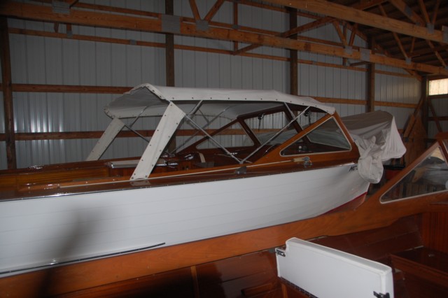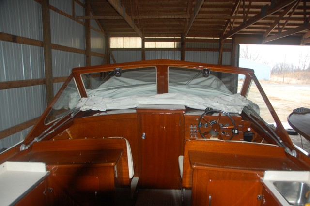 This is basically a new boat. It was stored inside for 10 years, so for a ¼ of its life it was preserved. It is now fully restored; has been launched, and is fully sea-trialed. Restoration included: new paint and varnish throughout (6 coats varnish, new hull paint, new bottom paint, bilge and cabin paint, even the insides of the planking were varnished for protection); new wiring throughout; new fuel tank / fuel line, new Nautilex flooring, new bilge pumps, new depth sounder, new VHF, new rudder and shaft packing; new swim platform, new mooring cover. The rest is original, and in perfect shape! Sleeper configuration, but with special-order factory Cruisette-style cabinets. The decks and windshield are Mahogany. Chrysler 360 (250 hp) engine; with full tune-up. Boat has trim tabs, docking lights, sink with water storage tank, 2 batteries, teak swim ladder, etc. Restoration pictures and complete work history available upon request.