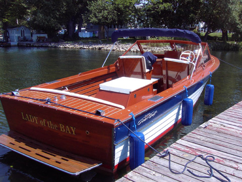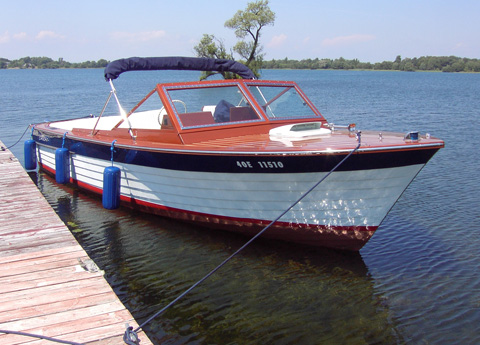 This boat has been lovingly restored and cared for. Kept on lift in a boathouse, stored indoors in the winter. Had new bottom installed in 2004, new transom, mahogany planked decks, windshields, coaming, ceilings, and dash. New flooring with stainless steel trim, new upholstery, full canvas including removable transom cover and custom fitted mooring/ storage cover. Am/fm/cd marine stereo. Trim tabs and swim platform. Engine is in perfect condition, all new wiring, new and/ or re chromed hardware, new fenders, lines, batteries etc. New custom fitted heavy duty tandem axle trailer. All in all, an exceptional example of a great lake boat