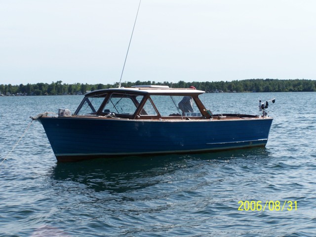 1965 25 Lyman Cruisette, in regular service until Labor Day, 2006. Last owner had this unrestored beauty for 18 years, it was used often and boat house kept. She was always hung by the lifting eyes and suspended when not in use. Engine replacement,small block Chevy w/marine gear,in 1991, showing approximately 1655 hrs. SS fuel tank (replacement), older Lowrance fish finder, and factory sunroof. Head forward, dual batteries. The electric anchor windlass and all items on this boat work. The hull is nice, original and unrestored. There is a soft spot on the Starboard side aft by the spray rail. This boat is usable as is and would make an excellent candidate for a restoration. No trailer. Possible help w/delivery and/or storage. This boat is in incredible condition for a 41-year-old classic! If you are looking for a wooden boat, a look at this boat will be worth your time.