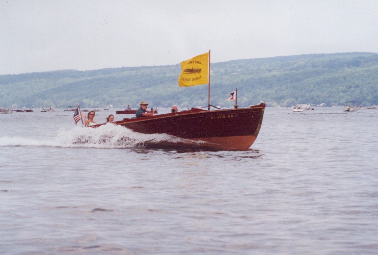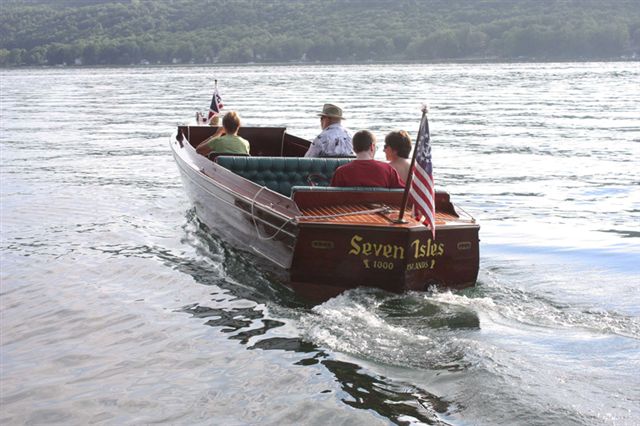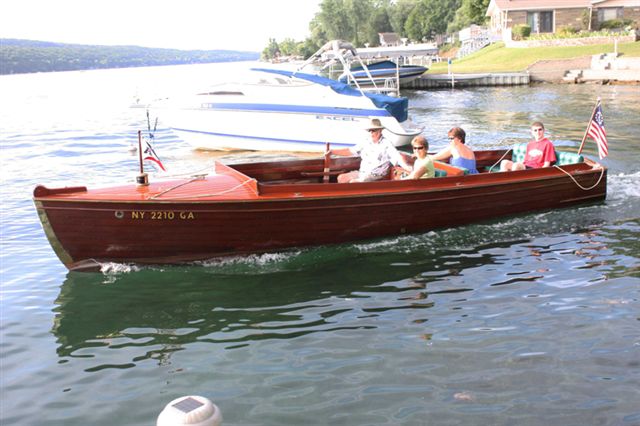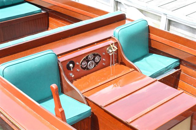 Made in 1928 by Duclon Boat Works of Alexandria Bay, The boat is a smooth Mahogany bottom with cedar lap strake side planks. The boat was first set up for "guiding" which was popular in the 1000 islands with local guides bring tourists out for a day of fishing or touring. These people were called "Sports" and as such the boats became known as "Sport" boats. This boat was fully restored in 1994 by Sutherland Boat Works in Penn Yan, New York. This boat spent all of it's life in the St. Lawrence River until 1994 and has always been in fresh water. This is a rare side steer tiller which offers a smooth ride in any water and a great piece of 1000 Islands history.