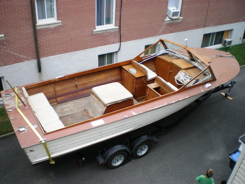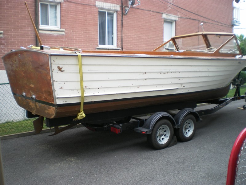 A very sound and straight hull on a never use trailer, interior partially strip from varnish (reassemble), need time that I didn't have, downsizing collection, price of 4000$ near the value of the trailer, located half hour from the US border.