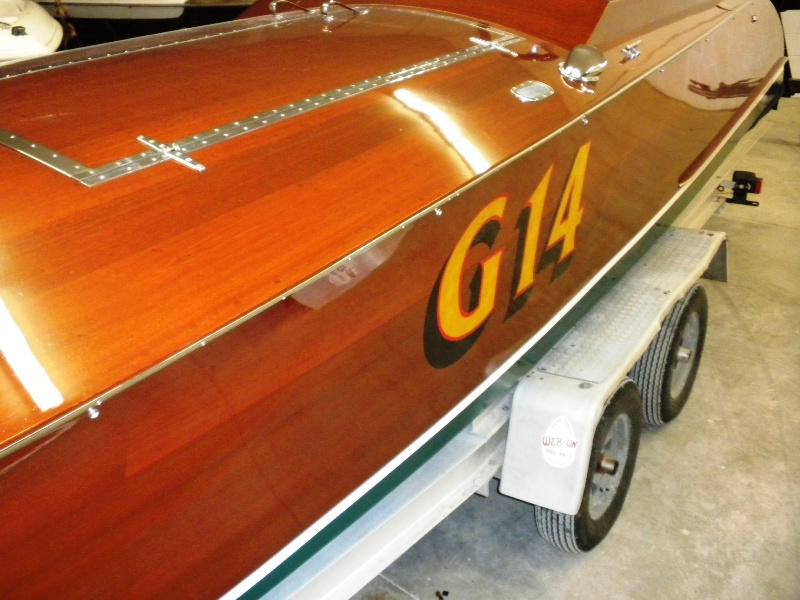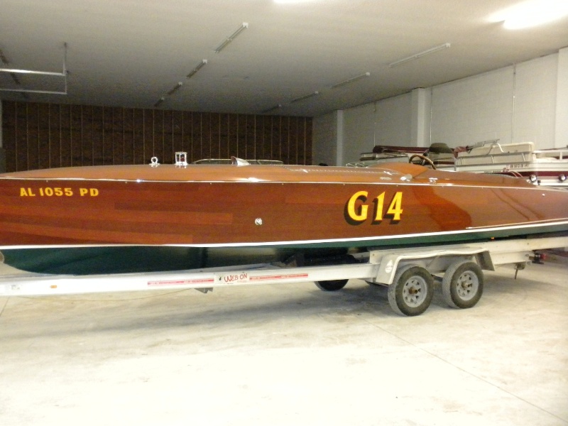 This is a replica Gold Cup Race boat which was built in 1981 by Brooklin Boat Yard in 1981 and was drawn off the design of the 26 Foot Hacker Craft Gold Cup Racer. The boat has been impecabbly cared for and it shows. The boat needs absolutely nothing and is a strong running good looking boat. Interior is excellent, hull is perfect and hardware is all pristine. The boat will survey out very well and will not dissapoint anyone. This boat is an exact duplicate to Alan jackson's Race Boat called "Hoochie Koochie".