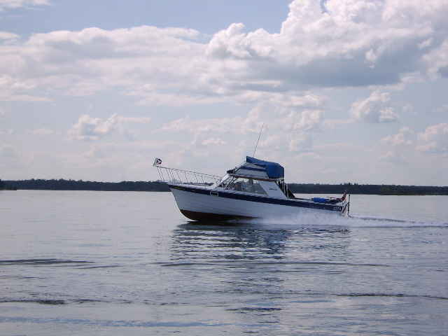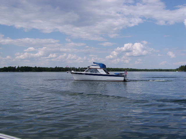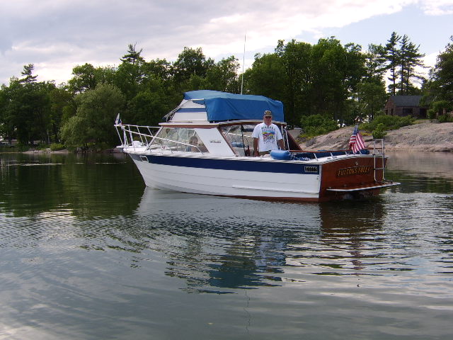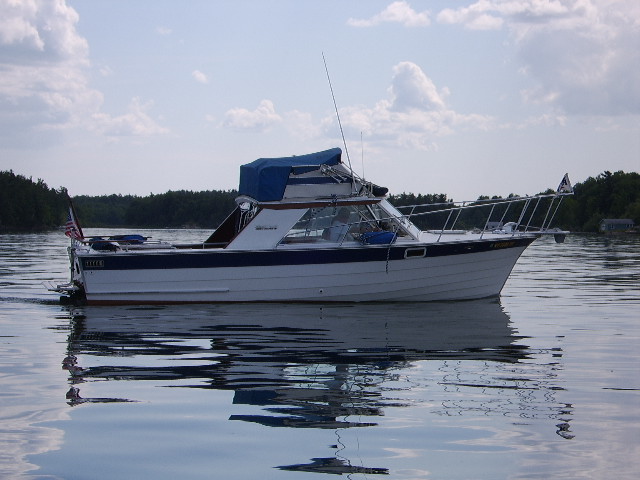 This professionally maintained beauty has had the same owner since 1985. The overall condition is excellent with 2 year old upholstery. There is an electric 50lb St. Lawernce guide anchor included. Also, the Mercruiser I/O was replaced with a brand new unit 4 years ago. Canvas includes full drop curtain with camper top and flybridge bimini.