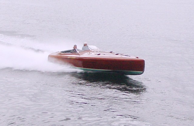 A Gold Cup racer reproduction built by Clarion, one of the best in the business. Fast and gorgeous. Boat is cold molded, West System and mahogany planked with no fasteners. Italian leather interior, custom hardware and 2 props are included in this beautiful contemporary classic. Photos updated January 2010!