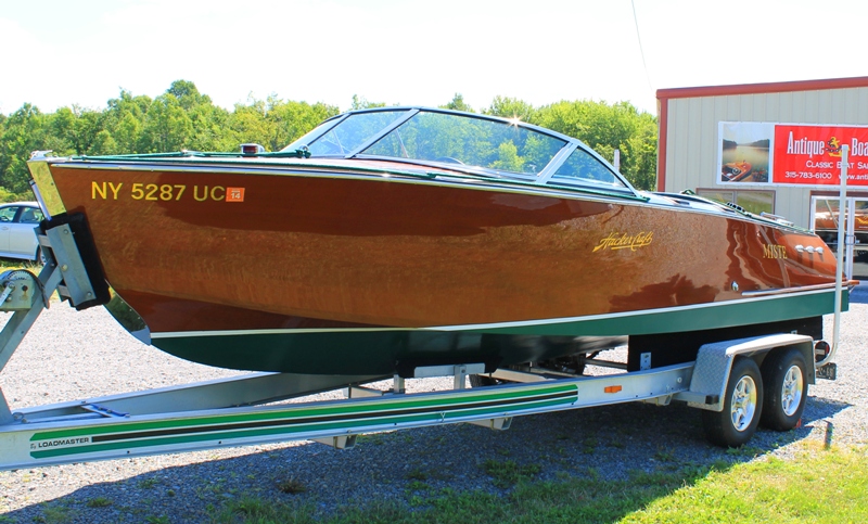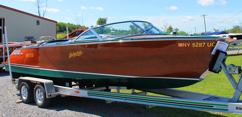 Built in 2000 this beautiful 26 foot custom Hacker Craft Sport Runabout features a 496 Cubic inch 425 HP multi -port fuel injected Crusader engine with a modestly low 70 hours on the engine. The boat was always stored indoors in the Finger lakes and kept in a climate controlled building during the winter months. The boat was upgraded in 2009 with all new varnish and bright work to Show Condition. Other features include a new "Sport" Thompson windshield, mooring cover, power source, courtesy lighting, radio with single CD, with 4 speakers, hour meter and depth finder. This boat rides and shows new and would make an exceptional addition into your boat house.