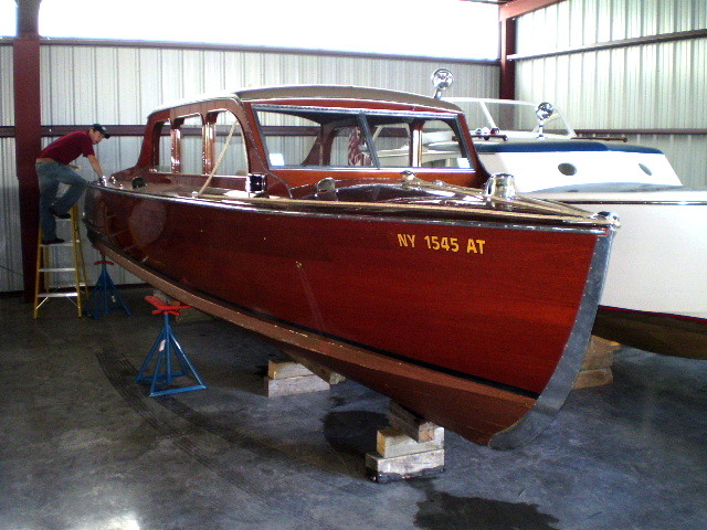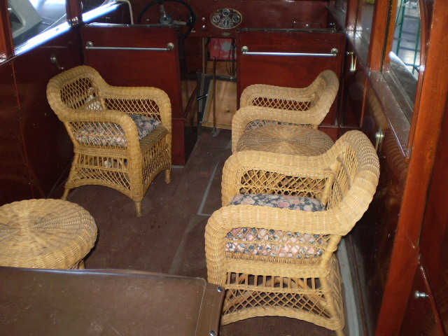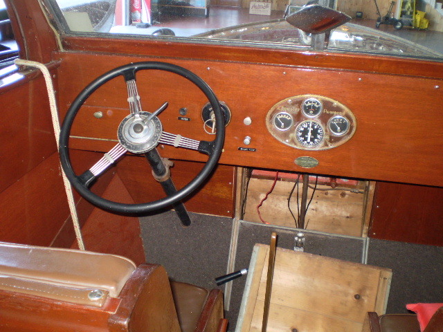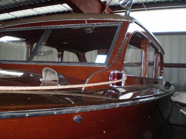 The Hutchinson brothers in Alex Bay made sedans 28-40' in length. There were only 12 of these made...and we have one of the finest. Everything about this boat is original (engine updated). The electrical system has been updated to 12s volt and double bilge pumps installed along with double batteries and a "trickle" charge system for the batteries. All wood and hardware is orginal. This boat has always made the St. Lawrence River home after being built in Alexandria Bay in 1937. The original wicker furniture is still with the boat. The 28' was the only model offered with the engine mounted midship which offered a more stable ride. This boat is in good, solid condition. She is a great runner and is powered by a 1940 Chrysler 140hp engine.