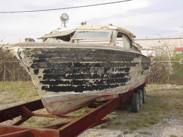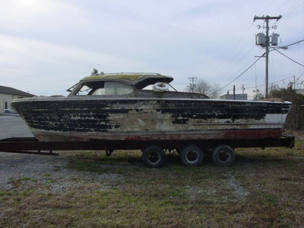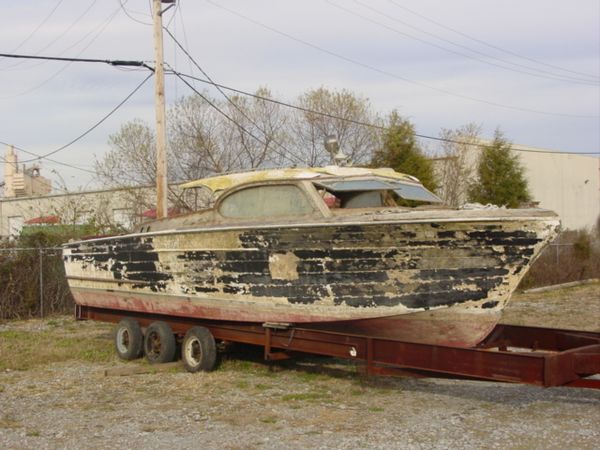 Very rare boat, only 36 ever made and one of only 5 known to be in existence. This is a marquee model. It was originally delivered to Cleverdale, NY. Has the original Lake George maps from 1955. Boat is located in Tennessee. It needs a full restoration, but all hardware is present.