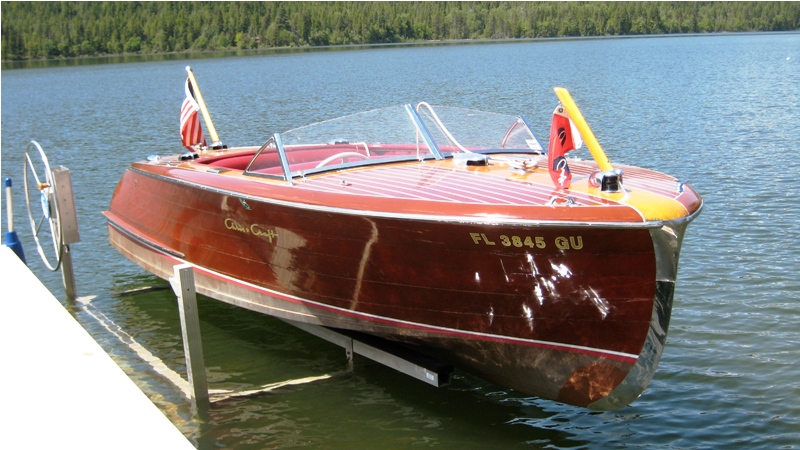 Hull number R20-005. Only two earlier hulls know to exist (R20-004 & a pre-production model). Prior owner re-powered with 210 HP Chevy 327 and a Velvet-Drive transmission. Great riding and running boat. Engine has been removed and the boat is ready for restoration - stain, varnish and upholstery or can be reassembled for use.
