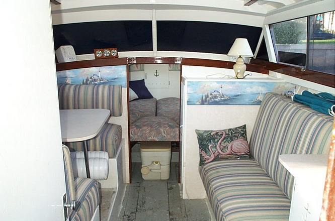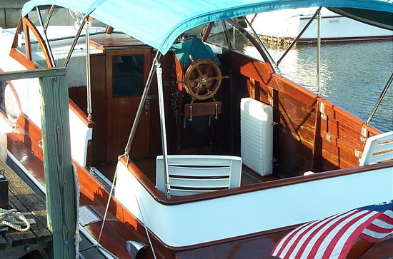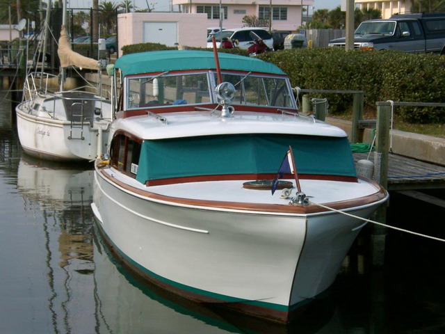 Three and half year restoration. The hull has been refinished from bare wood, gel coat finish. New carpet, trinidad bottom, new upholostery, fiberglass bow deck, cabin top and surround. Convertable top and lower wundshield covers in teal sunbrella. Tinted windows and windshield. Rear open deck completely refinished, new mahogany bow rail. All wood refinished inside and out.