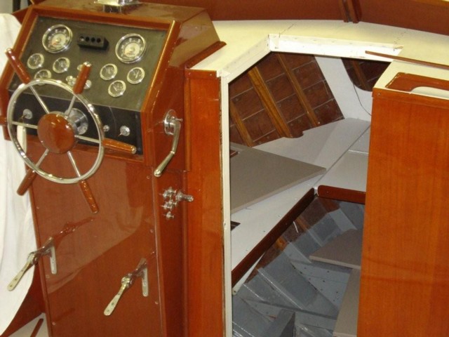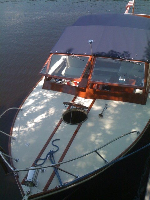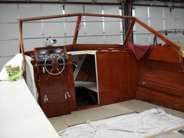 This is a fantastic boat for entertaining friends and family. This boat has a small V-berth forward which will sleep two. Aft of the v-berth, the rest of the boat is a cavernous open deck. 8-10 people can be seated in this area! The engines are below deck. Powered is a pair of Corvette block GM 283 engines modified by Chris Craft. The ignition has been converted to electronic, Each engine delivers 170hp, starts easily and runs well. 2007-2008 Restoration Over the last six months, the boat has undergone a total restoration. The boat was disassembled down to the hull. Wood was repaired or replaced as needed, including several stringers and a hull section. Every wood surface on the boat was stripped and professionally resurfaced. Hull sides, bottom, decks, floors, and all varnished surfaces. The vinyl on the decks and floors was replaced. No expense was spared to prepare this boat for years of carefree use. The varnish is 10 coats of deep luster.