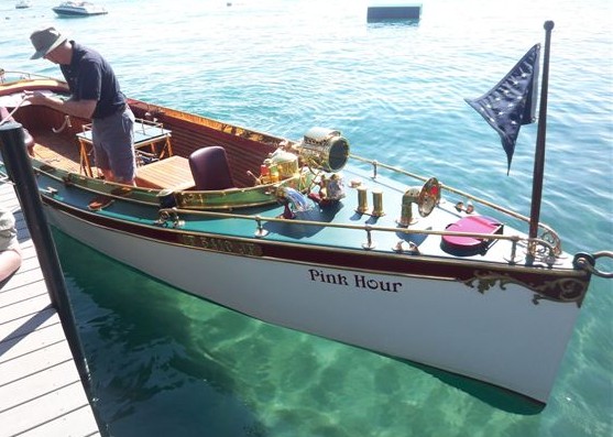 An Edwardian style fantail motor launch completely restored to show condition- award winner at the prestigous Lake Tahoe Concours d'Elegance. A well engineered professionally built 10 gauge steel hull with a beautifully detailed engine, teak interior, and many rare brass fittings create a stunning one of a kind vessel. The vintage 1200 lb, 3 cyl. Easthope engine with a 4-1/2" bore 6" stroke, twin ignition, and symphony of exposed moving parts is the boat's centerpiece. With a heavy keel, she is stable and safe to operate even in rough water. Her uniquely designed custom trailer with electrically operated hydraulic disc brakes make her easy to launch and retrieve. This boat truly creates a sensation wherever she motors. As a final touch a spare Easthope engine is included in the sale.