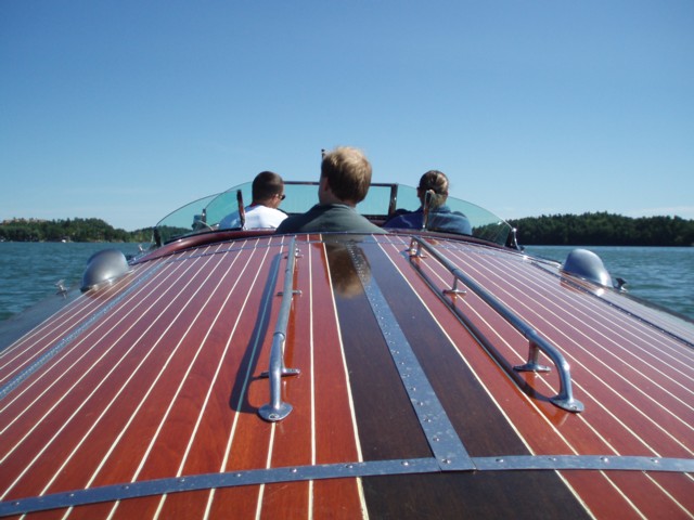 A 1989 Hackercraft triple cockpit with walkthrough-Mahogany lining and floors-Interior replaced 2003-tuck and roll burgundy. This is a user boat-runs great-used daily-engine rebuilt in 2005-real rumbler.