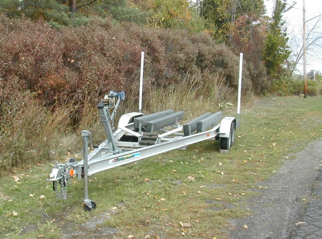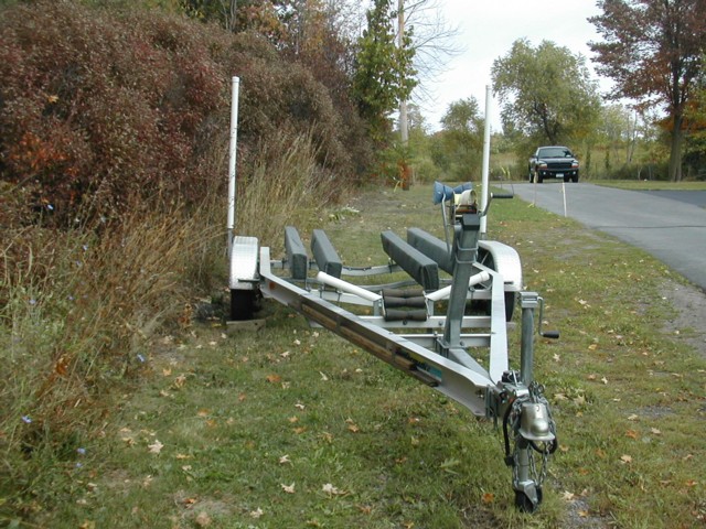 2001 tandem axle custom built for a 25' inboard. Features a 4 bunk system that is designed to support motor and stringers on a wood boat. Tongue and bunks are adjustable.