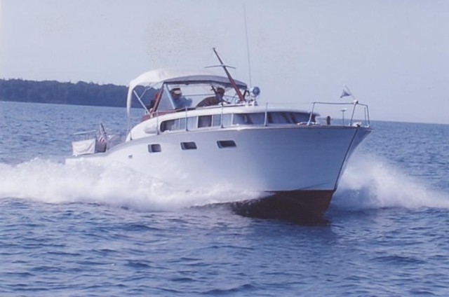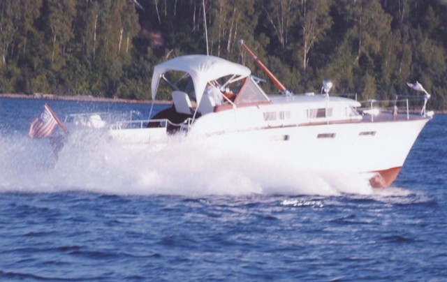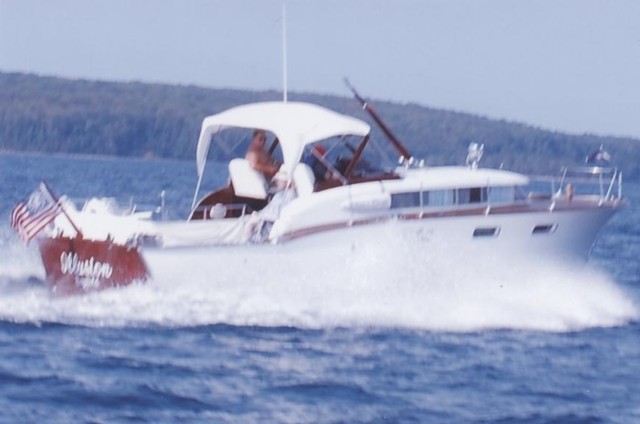 This very desirable cruiser ws one of the first in the series of white-sided Futura's. To be featured in the Dec. '07 issue of the Brass Bell. This is hull #32 of 118 produced. All very original with new teak decks and modern refrigerator. Always kept on Lake Superior. On plane at 2,000 rpm's, WOT at 3,400. Height of boat is 10'7". Unique convertible top with original frames.