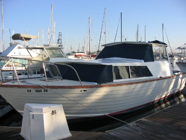 For sale is a 1965 Chris Craft Cavalier Express Cruiser, nice interior and solid, lapstrake mahogany hull with absolutely zero leaks, always a dry bilge(unless it rains). This vessel needs substantial work, including two new engines, has good paragon transmissions. Interior is in good shape, exterior needs woodwork, and painting, including cap rail replacement and probably most of the first plank under the cap rail due to dry rot. There is one spot of soft wood at top of transom on starboard side and one area of significant wood damage by the window in the head. Many photos and details are available. I have just purchased a 1964 aft-cabin Cavalier and reluctantly need to sell this vessel quickly, hopefully to someone who appreciates the classic lapstrake vessels and will restore her to fine condition. Vessel is moored in southern CA.