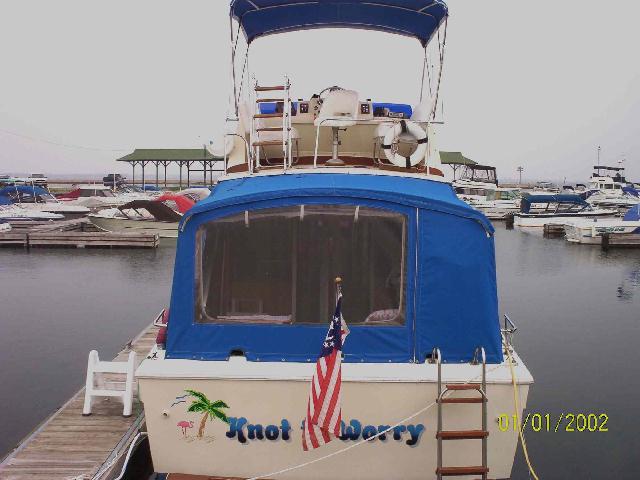 If you've desirered an excellent live aboard, this is the one! This beauty has dual steering stations, trim tabs, fuel vapor monitor, fire boy extinguisher, CO 2 detector, depth finder, 2 double SS fender holders and the following new items; 2 pedestal chairs, storage box, frostless frig on stern deck, garmin GPS, VHF radio and AM-FM-CD stereo and TV antenna! The canvas is only 3 years old and a brand new full flybridge enclosure is included. She is in absolute excellent condition inside and out!