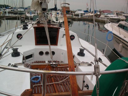 This is a nice, fast, stable sailboat. A former racer now, like a retired thoroughbred, a gentle cruiser that still loves to run. Owner has done his best to keep her fit and functional, but she deserves a full restoration. She is a very pretty boat, with a great "transom", and it sails like a dream, well equipped, functional, and honest. This is a project boat, a class winner, launched from Boston in 1979. It was rescued from a parting yard, and has been made functional, but she needs the dedication that cannot be given. This unique, pretty boat is offered at owner's cost. Will deliver on Lake Ontario, and hope to visit.