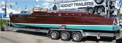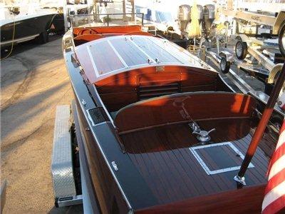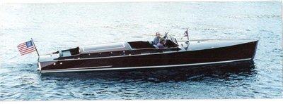 This is an outstanding replica of the 1920's 33 Foot Baby Gar. It has been custom built in 1994 and used in Southern Florida where it was carefully protected, covered and meticulously maintained. She is powered by a supercharged 600 HP Mercruiser engine and is capable of speeds in the 50 MPH range. She has recently been restored to near new condition with cost being a minor consideration. She is now "Turn Key" having 12 coats of fresh varnish and brand new leather upholstery, as well as, a rebuilt engine and V-drive. Her equipment includes a bow thruster, automatic fire suppression system, GPS, Depth Sounder and Compass. A very serious seller presently owns 4 Gar Woods and has simply run out of room in his boathouse.