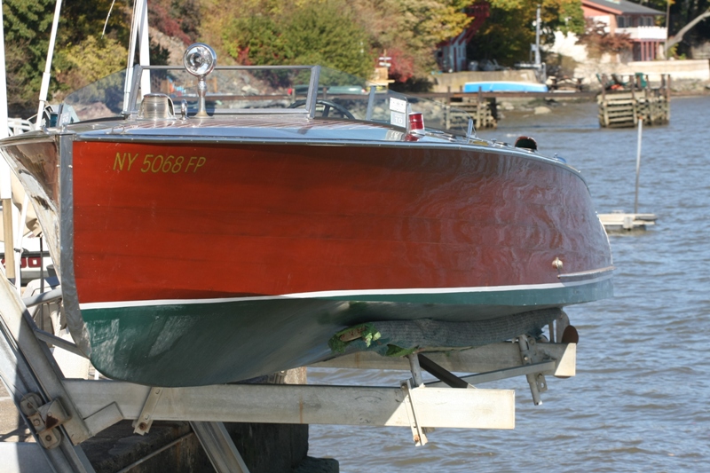 This 35' Hacker has been very well maintained and used little in its lifetime. She is powered by twin 454's and a pleasure to captain. The englarged second cockpit and walkthrough make this boat excellent for groups and social cruises with friends. The bottom and a large portion of hull planking have been recently replaced, followed by a strip and refinish below the gunnels. All work done by a reputable boat yard. She only gets a few outings each year and has been used on the Hudson.