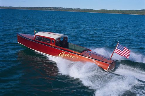 An outstanding recreation of a 1920's Limousine. This boat has it all....Fast with Twin 502 engines, Low hours and lightly used with such amenities as a wet bar, refrigerator, icebox, coffee maker and head. It also offer 6' 2" of headroom, a gorgeous v-berth and sliding windows for excellent ventilation. A premium sound system and speakers are tastefully concealed. The boat is powered by Twin 502 Cu. In engines generating 435 Hp each and the fuel tank and long range fuel tank allow for up to 185 gallons of fuel onboard at one time. The boat will cruise nicely at 25MPH but is capable of stepping up at speeds in excess of 50MPH when fully underway.