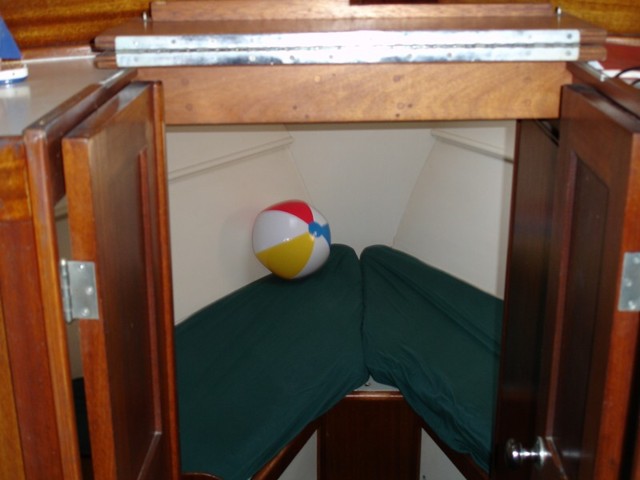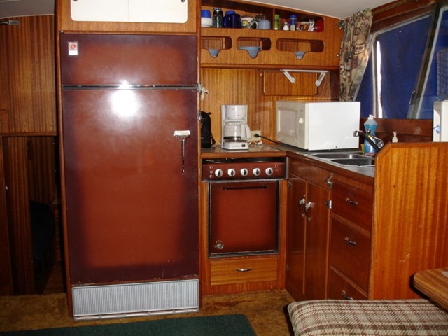 This boat has an aft cabin with twin beds, and bath with shower, v-berth has bed and bath, full kitchen with 3 burner stove with oven, full size refrigerator, generator, large living kitchen area, had 3 ribs sistered and new planks put in this year. swim platform withladder to deck.