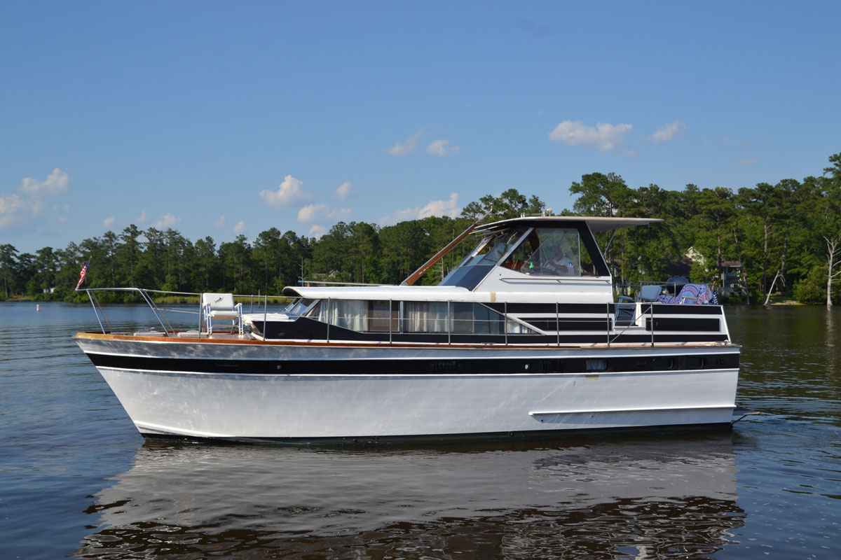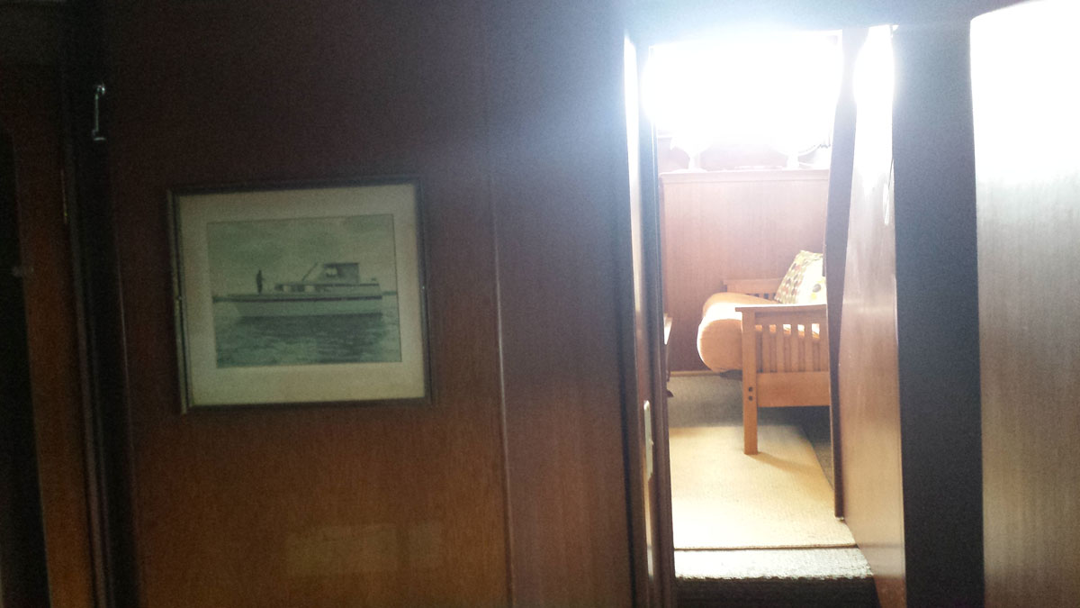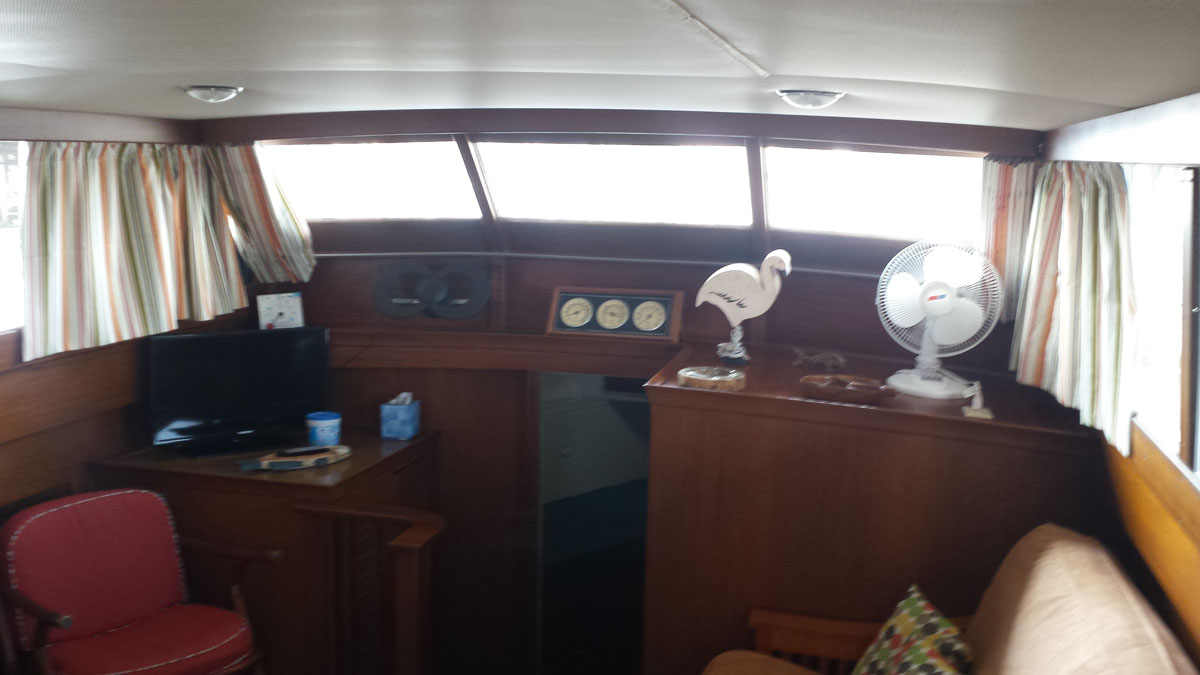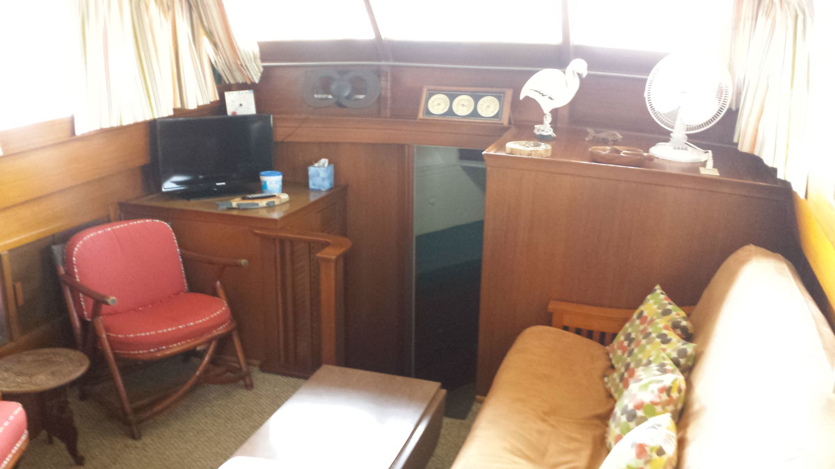Kept under cover its entire life until recently hauled. 2 heads, 2 staterooms. Needs TLC. Engines in running order.