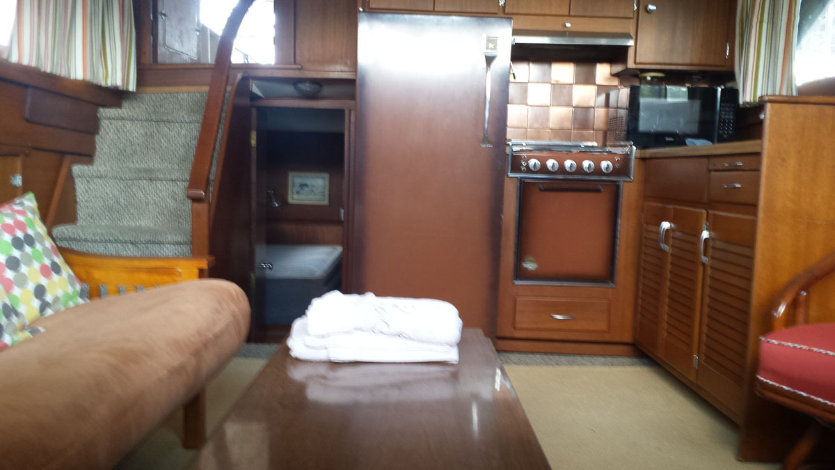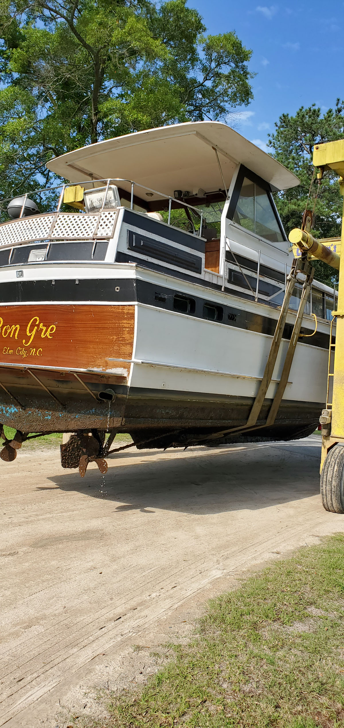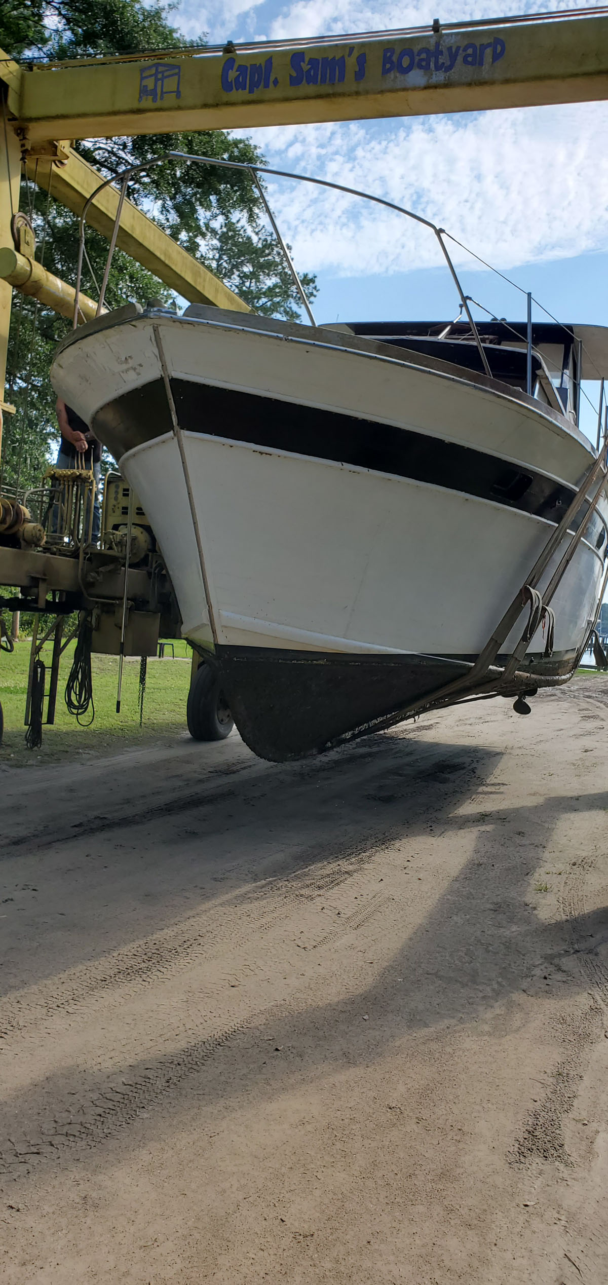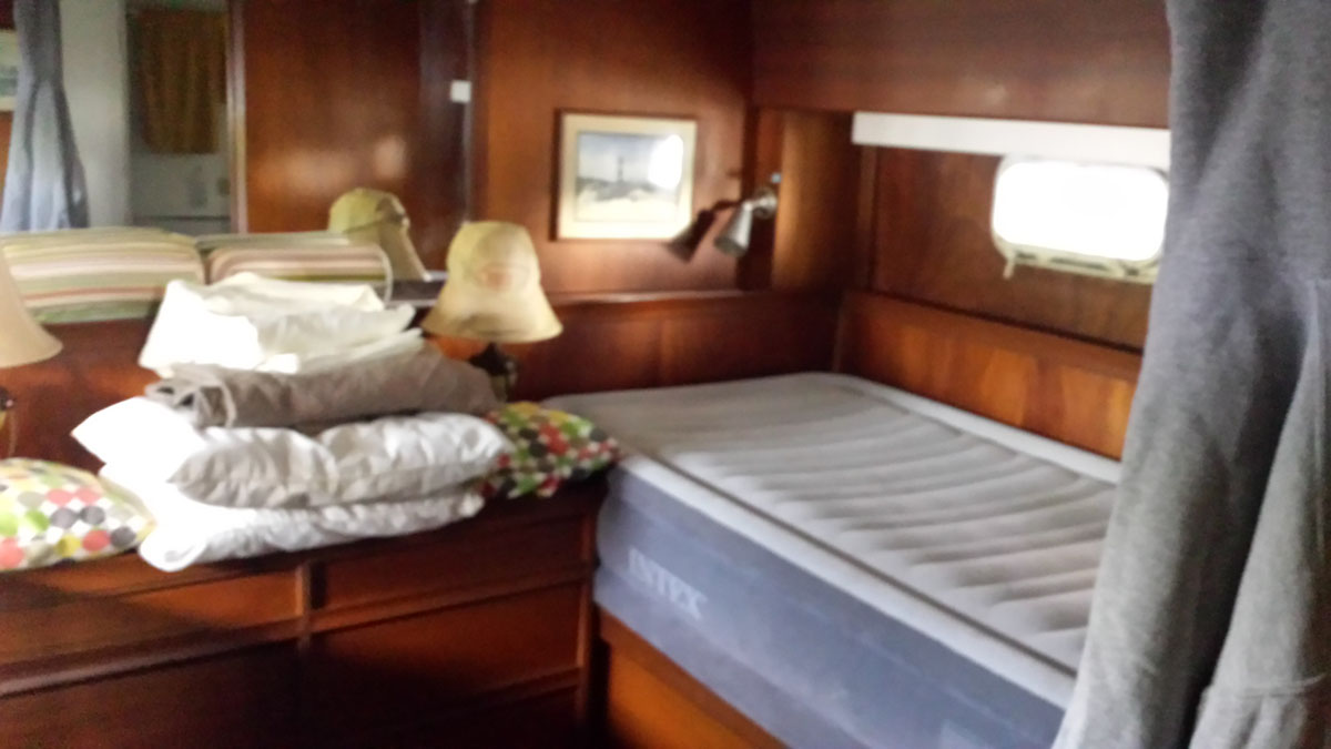 Kept under cover its entire life until recently hauled. 2 heads, 2 staterooms. Needs TLC. Engines in running order.
