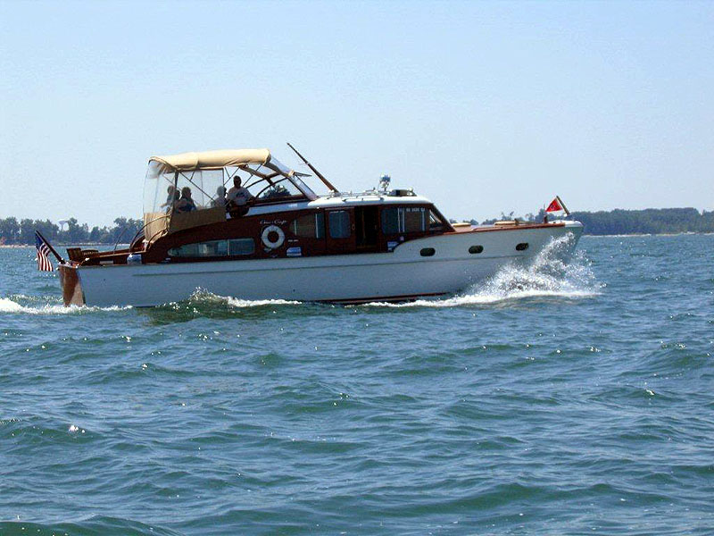 She spent most of her life on the lower Potomac. In 2002 we sailed her back where she lives now in a covered boat well near Marblehead, Oh. Engines always kept serviced and run well. The transmissions are velvet drives and work great. I have much of the history in papers and change of owners. Many of the interior and exterior finishes are originals. The head was remodeled and is nice. Salon has the original drop leaf table and pull out sofa bed as well as some authentic lamps. The exterior is very original . The foredeck is teak and others mahogany. Hull is sound and in pretty good shape. The transom has a couple of plank that could be replaced. She has a nice swim platform, newer holding tank, newer air compressor. Shore power and water systems work well. Hot water tank a couple of years old. All the equipment such as anchors, lines and furniture comes with her. If interested in our lovely Lady, we should have lots to talk about.
