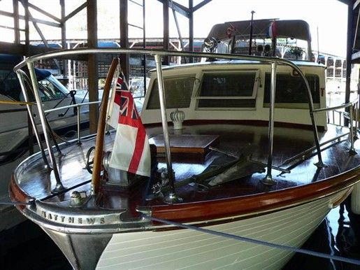 Solid boat and proud as the day Bobby Orr signed his first professional contract in her salon. Below water line: Good to excellent condition, prior owner replaced 1430 board feet of planking with new mahogany about 10 years ago. Everything suspect was replaced and bottom painted every 2 years. Above the Water line. Good to excellent condition. There are 2 places that are slightly blistered and punky that require replacement. These are above the water line so can wait a year or two. Guestimated do it yourself, if you are handy for anout $350 in materials. The decks are also mahogany and teak and in good to excellent condition. Decks has been regularly varnished and kept up. Interior: Excellent to pristine condition: Newer broadloom throughout the interior. True details to her original condition in most places