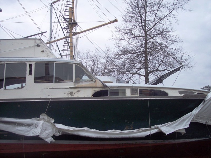Fanqui is a 1947 Elco 48 foot Deluxe Cruiser. A rare post WWII Elco cruiser. Her lines were derived from the early Elco PT 10 and PT 20 class motor torpedo boats (aka PT Boats). With her Elco plane underbody she rides on top of the water with little effort. Last engines int he boat were 318 CID Chrysler Engines that pushed her along at 21 Knots. Fanqui needs a new home and restoration. There has been a great deal done to the hull by the current owner such as chine logs, stem, planking and stern. Fanqui's bottom is built like a true PT with double diagonal mahogany planking and her top sides are carvel with seam battens.