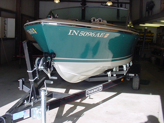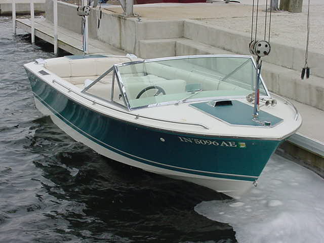 This boat has spent it's entire life on Lake Wawasee in Indiana and is one of only two Resorters I have ever seen with teal gel coat from the factory. Purchased and restored in 2004. This boat is in excellent condition. The upholstery has no rips or tears and the carpet is in excellent shape. The brightwork is good, hull has no scrapes or gouges or rash. The engine runs strong and the transmission is smooth. Oil changed regularly. The boat is very attractive on the water and garners many compliments. This is one of the most attractive Resorters anywhere. trailer shown in photos is availabel for an additional cost of $ 1100.00