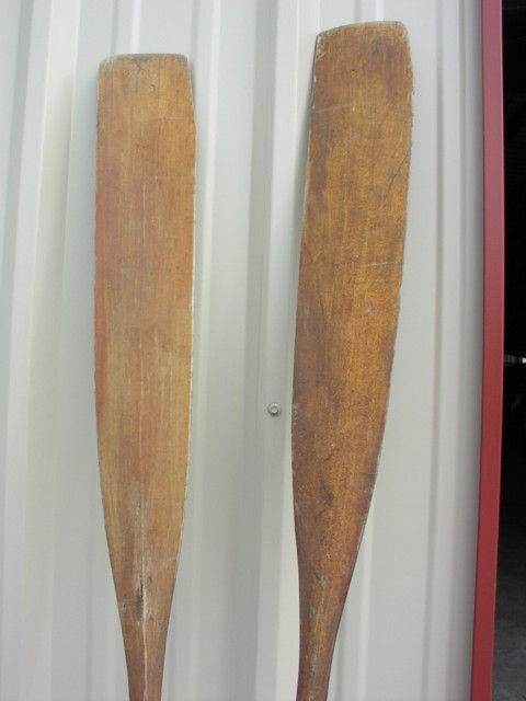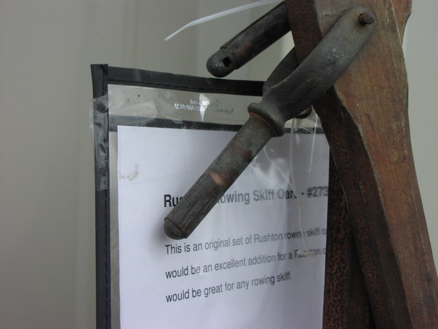 This is an original set of Rushton rowing skiff oars. This would be an excellent addition for a Rushton collector, but would be great for any rowing skiff.