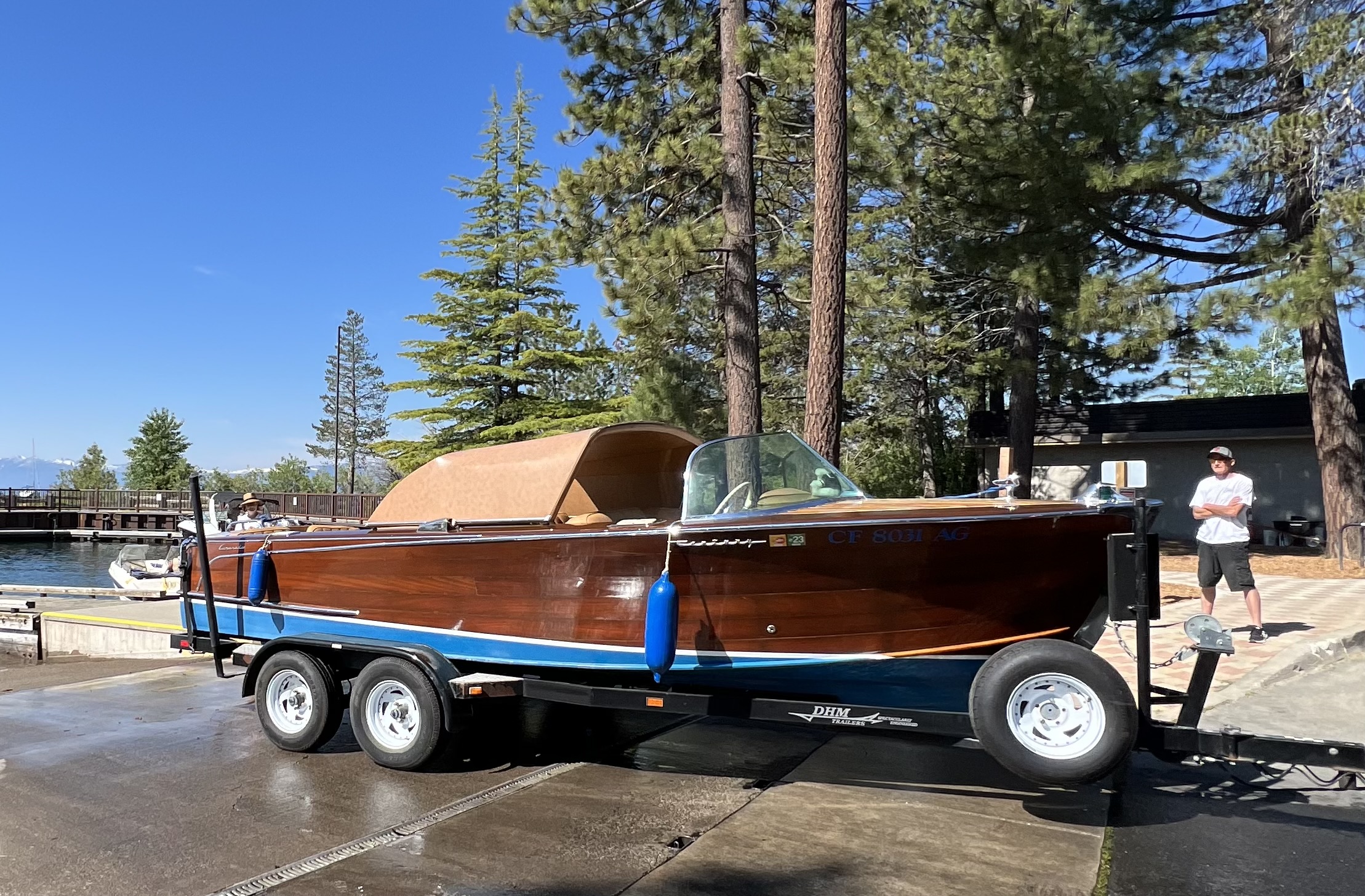 We bought Wood Duck in Lake Tahoe in 2007. We had a custom trailer built and brought her home to Salinas. Since then we spent many fun summers back at Kings Beach and cruising in the Delta. She is a beautifyl mahogany boat and deserves to be back on the water.
