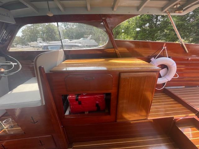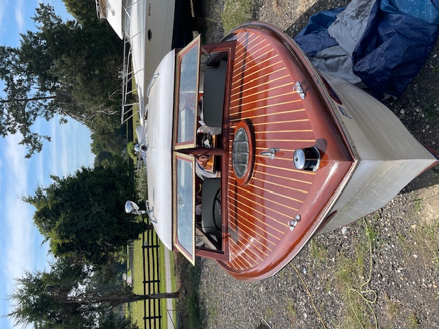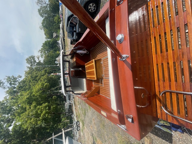 Chris Craft 1956, semi-enclosed 26", Purchased the boat in April 2024 and started boat renovation and about 90% of the boat has been restored. The bottom is original. The boat has been in the boat yard since purchase, and the engine was professional winterized by the boat yard 2024. Per the last Owner boat was in the water and engine was refurbished around 2022. Decided not to complete the project.